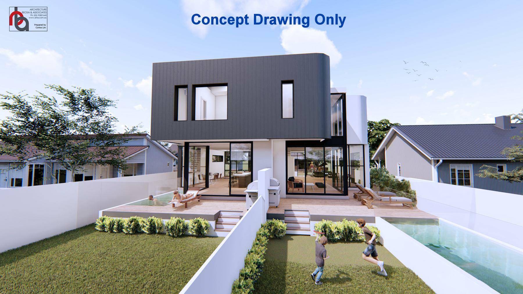 Displayed are 3 Dimensional Architects Conceptual images for your perusal; they are pre-DA Sketch Design Drawings and purely for marketing purposes.