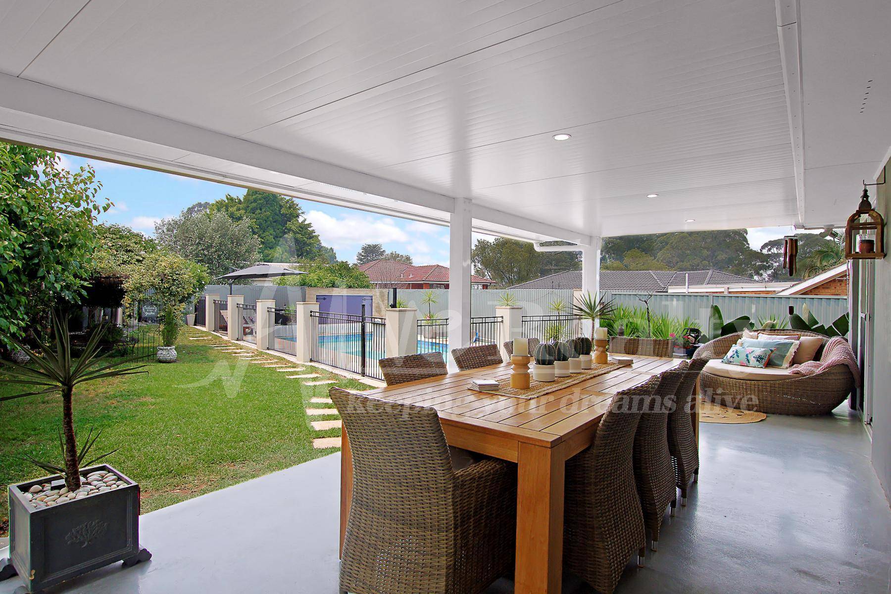 - Covered entertaining verandah overlooks expansive yard and manicured gardens.